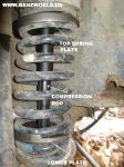 I also have found that you should possition the bottom plate about two coils up to allow room for the threaded rod to protrude. Not doing so will cause the threaded rod to bottom out on the lower control arm's spring perch. You should wind the top plate all the way up as far as possible by hand and this will give you adaquate clearance.