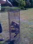 The next night I was working late on an engine and it sounded like someone was trying to break into my garage! Sounded like they were lifting on the garage door, then a few loud bumps on the doors. I thought for sure I was going to have to kill somebody until after a few minutes I could hear the little bastard walking across the roof. I was somewhat scarry, only because I have never had to shoot anyone before and at first I thought it was someone trying to break in! What nerve they had, I could obviously be heard and all the lights were on. After realizing it was just that pesky coon trying to get back in I decided to borrow a trap.