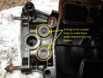I modified the upper intake by drilling in the coolant holes just to make them wider diameter so the nuts that are coming from the lower intake will fit there, and I cut the old upper intake gasket as showed in the photo because it will not seal anything now and need to be cut so the upper intake will seat perfect.
