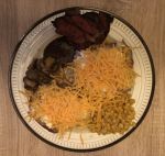 Chicken, brussel sprouts. broc or caulif and sweet potato drenched in chicken broth.