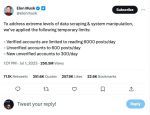 If I get a single "limit" message, EVER -- I'm taking a screen shot and using it to request a percentage off my subscription price! This is beyond fucking bullshit! And I'm sure the advertisers are going to just love knowing thier view base is being blocked by the same company they are paying to promote! This guy Musk, there is clearly something wrong with his head! I don't see how ANYONE paying for a subscription should have to even THINK about any kind of fucking "limit"... That's just BS!