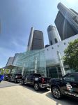 Outside GM renaissance center - Silverado truck for each Indy driver with their name on it.