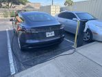 By the second night, a Thursday getting closer to the weekend, the Teslas had converged on the free charger in the Hilton parking lot.