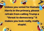 Anyway, it's clear that who the Democrats voted for in the primary is not going to be the person on the ballot. Clearly it does not matter what the Democrat voters want, they get what they get -- and that is "Comrade Kamala"